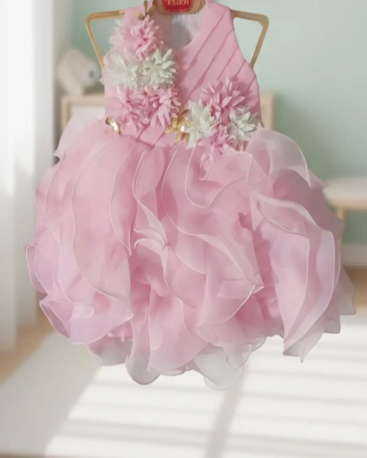 Ruffled Floral Pink Party Dress