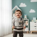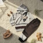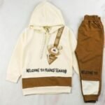 This adorable two-piece outfit is perfect for keeping your little one warm and comfortable. The soft, light-colored hoodie features a cute teddy bear graphic, while the matching sweatpants ensure a snug and cozy fit. Made from a comfortable and breathable fabric, this set is ideal for everyday wear and a great choice for parents who love a simple, neutral aesthetic.